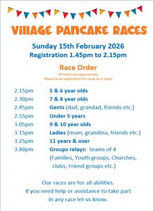 Our 2026 Village Pancake Races are back on Sunday 15th February at The Mountsorrel Memorial Centre. Registration and face painting start from 1.45pm.